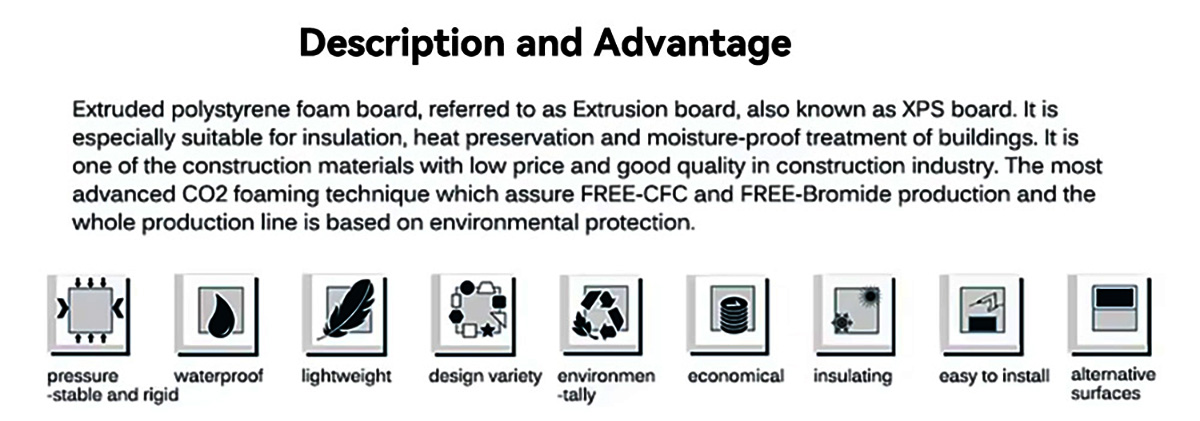 ①高性能300kPa泡沫板(λ=0.033W/m·K),适用于地板、高速公路、冷库和酒店